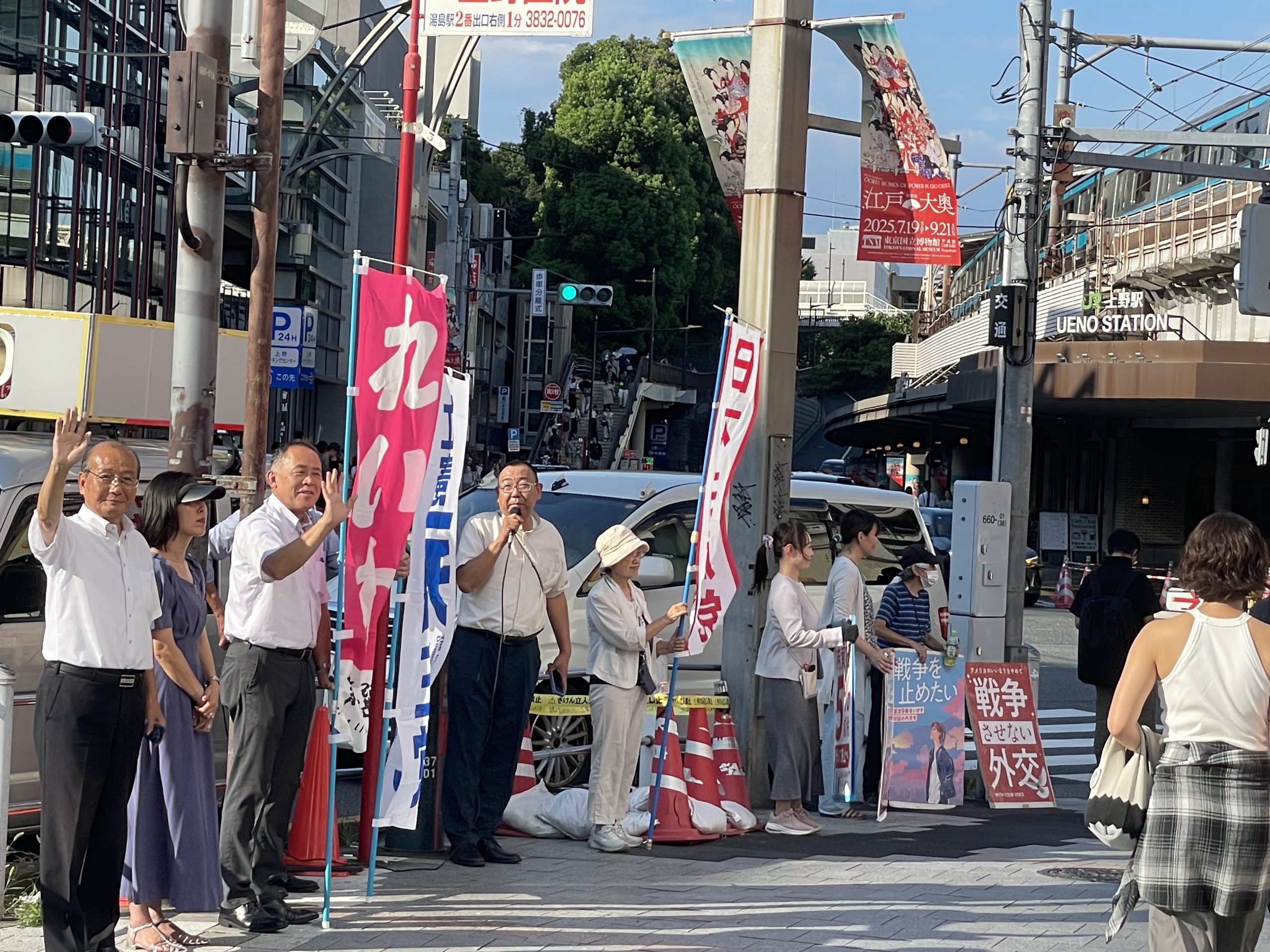 終戦から80年の8月15日、衆院東京二区(台東区・中央区)の立憲民主党・れいわ新撰組・日本共産党が共同街頭宣伝を行いました。