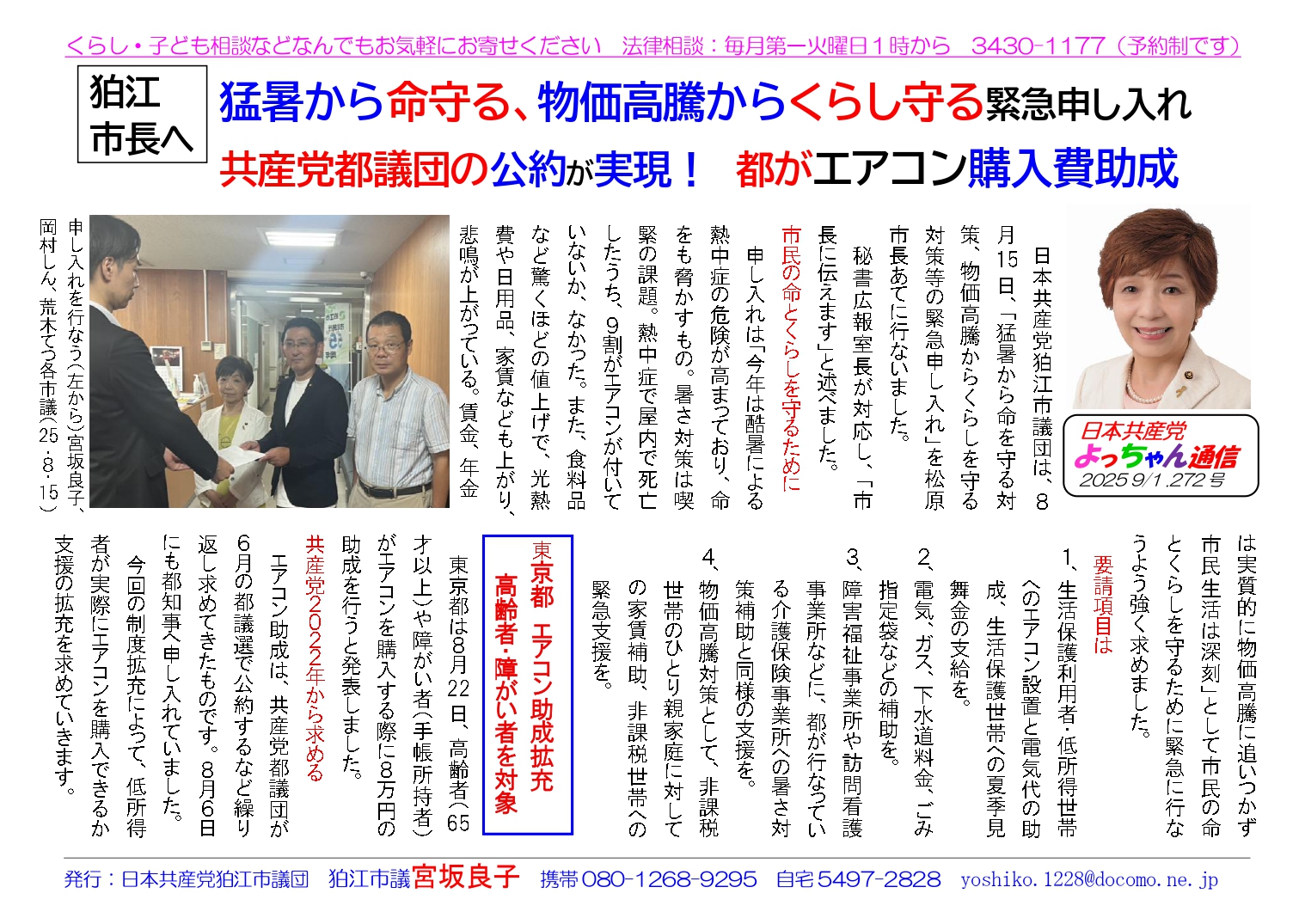 ⭐️狛江市長へ猛暑から命守る、物価高から暮らし守る緊急申し入れ‼️