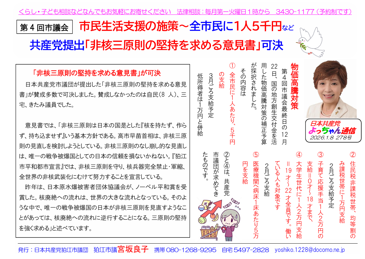 よっちゃん通信1月号(278号)を発行しました!