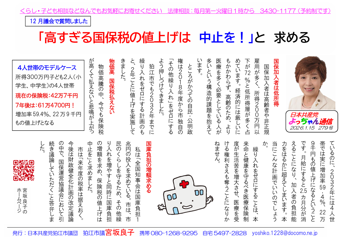 よっちゃん通信1月号第2弾(279号)を発行しました!