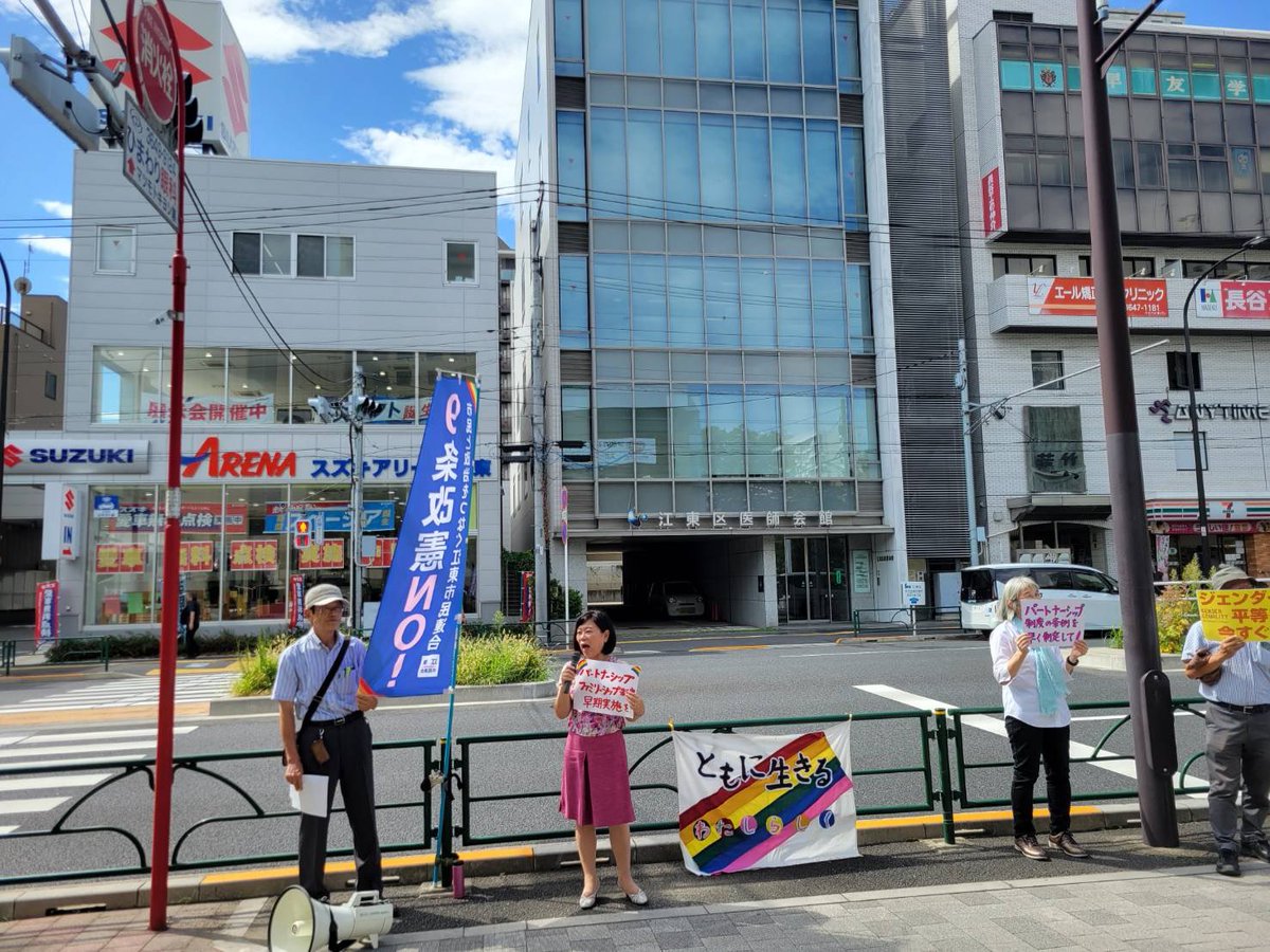 午後からは区議会の継続本会議を傍聴。本会議前に区役所前で行われた江東区版パートナーシップ・ファミリーシップ宣誓制度の早期実施を求めるアピール宣伝に参加してスピーチしました。…