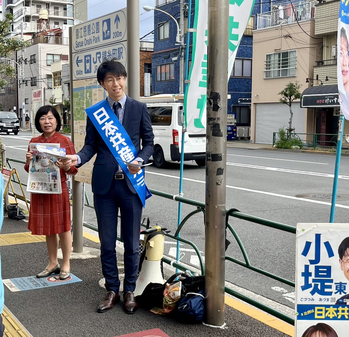 今朝は住吉駅前で、#小堤東衆議院15区予定候補とご挨拶。