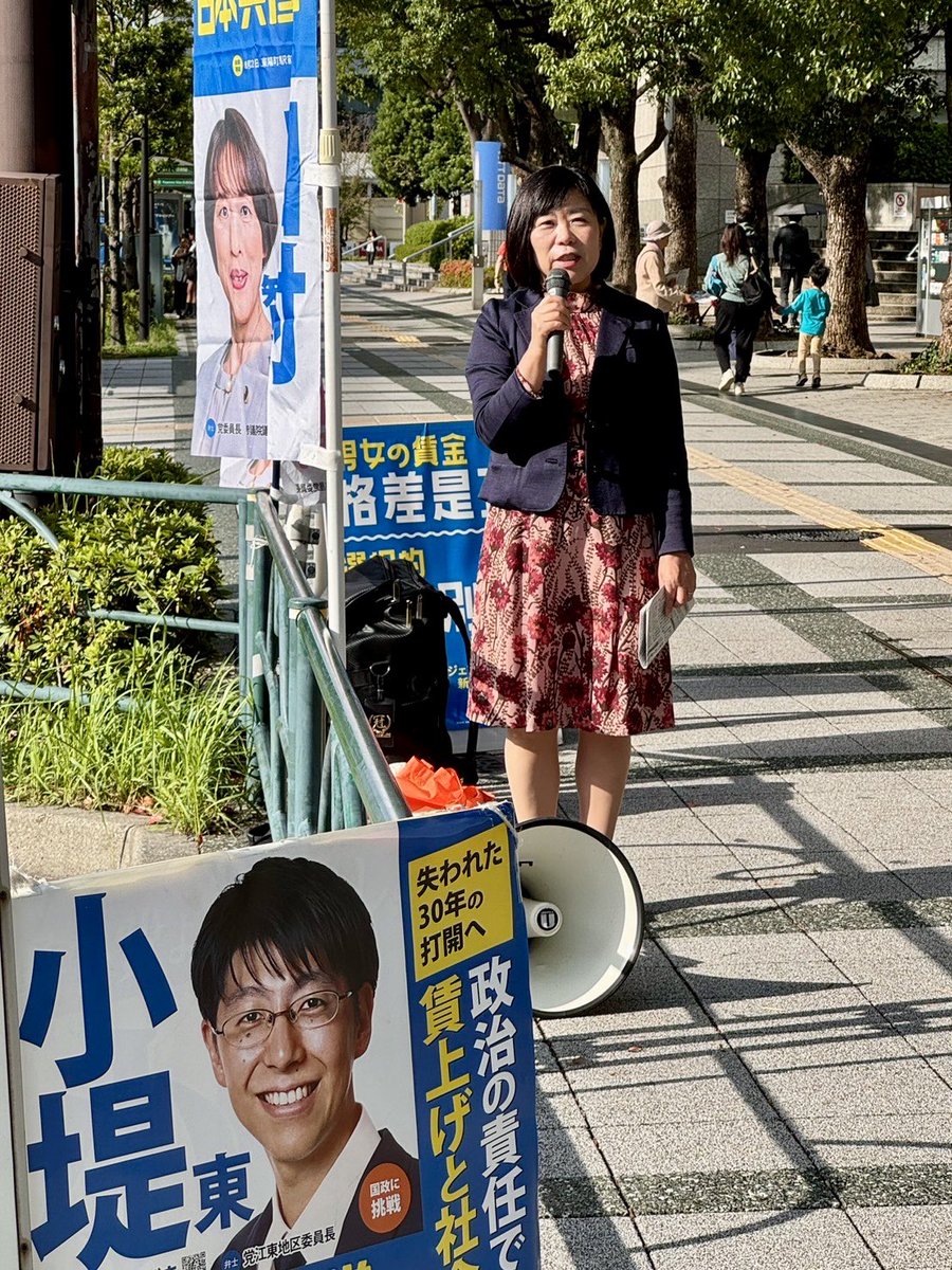 今朝は豊洲駅前でご挨拶と政策の訴え。