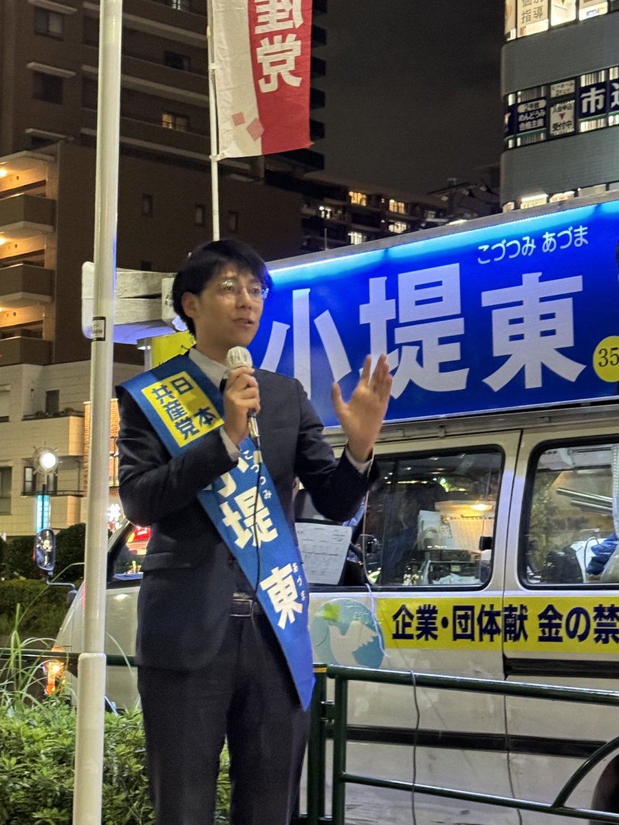小堤東候補と18時からは豊洲ビバホーム前で街頭演説。