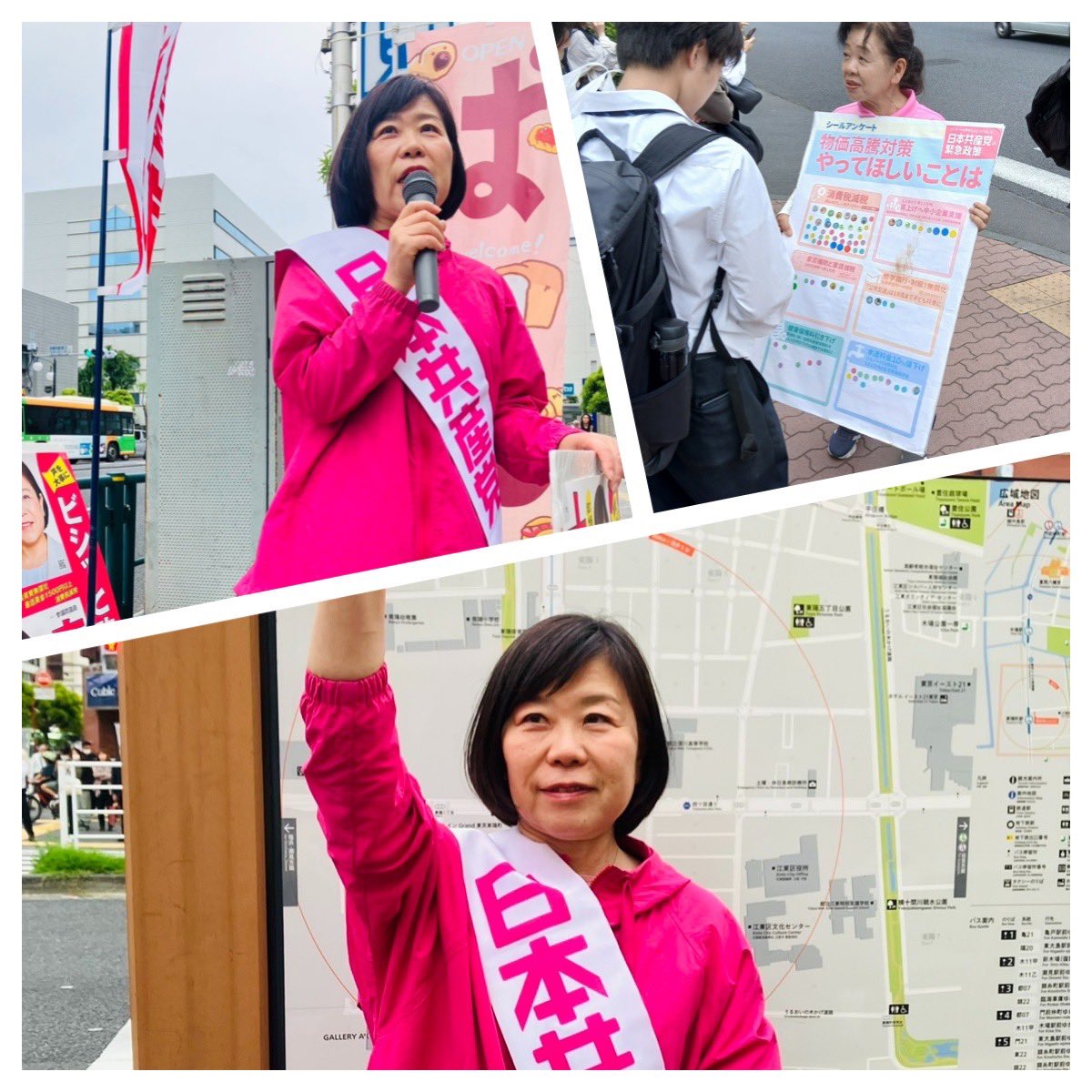 今日は朝と夕方、東陽町駅で街頭宣伝。午後は亀戸クロック前で訴え。
