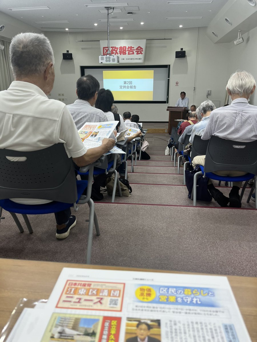 江東文化センターで共産党区議団の区政報告会が行われています。