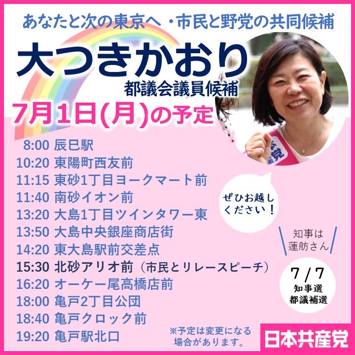 予報では雨☂️のようですが、地元で皆さんにご挨拶させて頂きます。