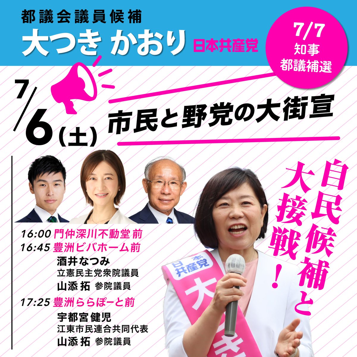 11:00 亀戸駅北口 小池書記局長が応援に駆けつけます。