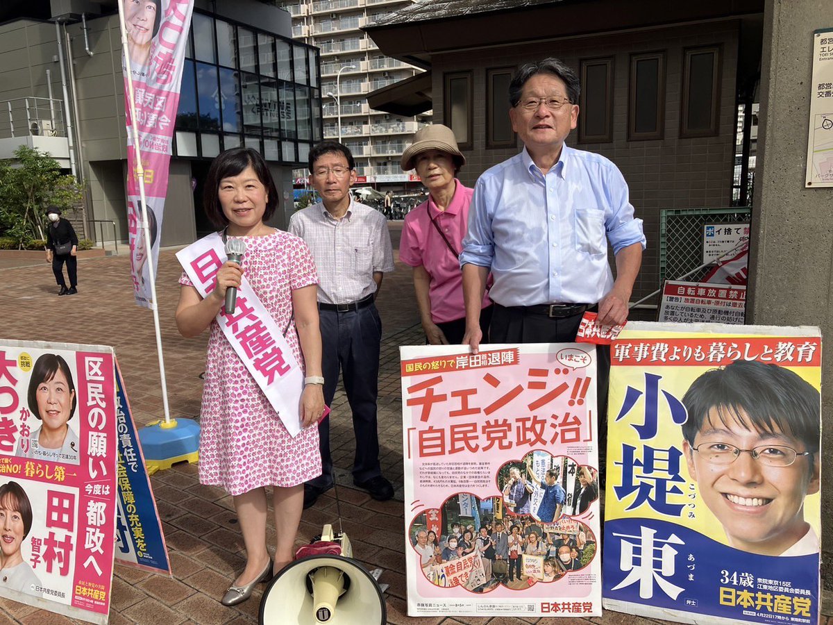今朝は #小堤東・衆議院東京15区予定候補、#菅谷俊一区議会議員 と一緒に東大島駅前でご挨拶。