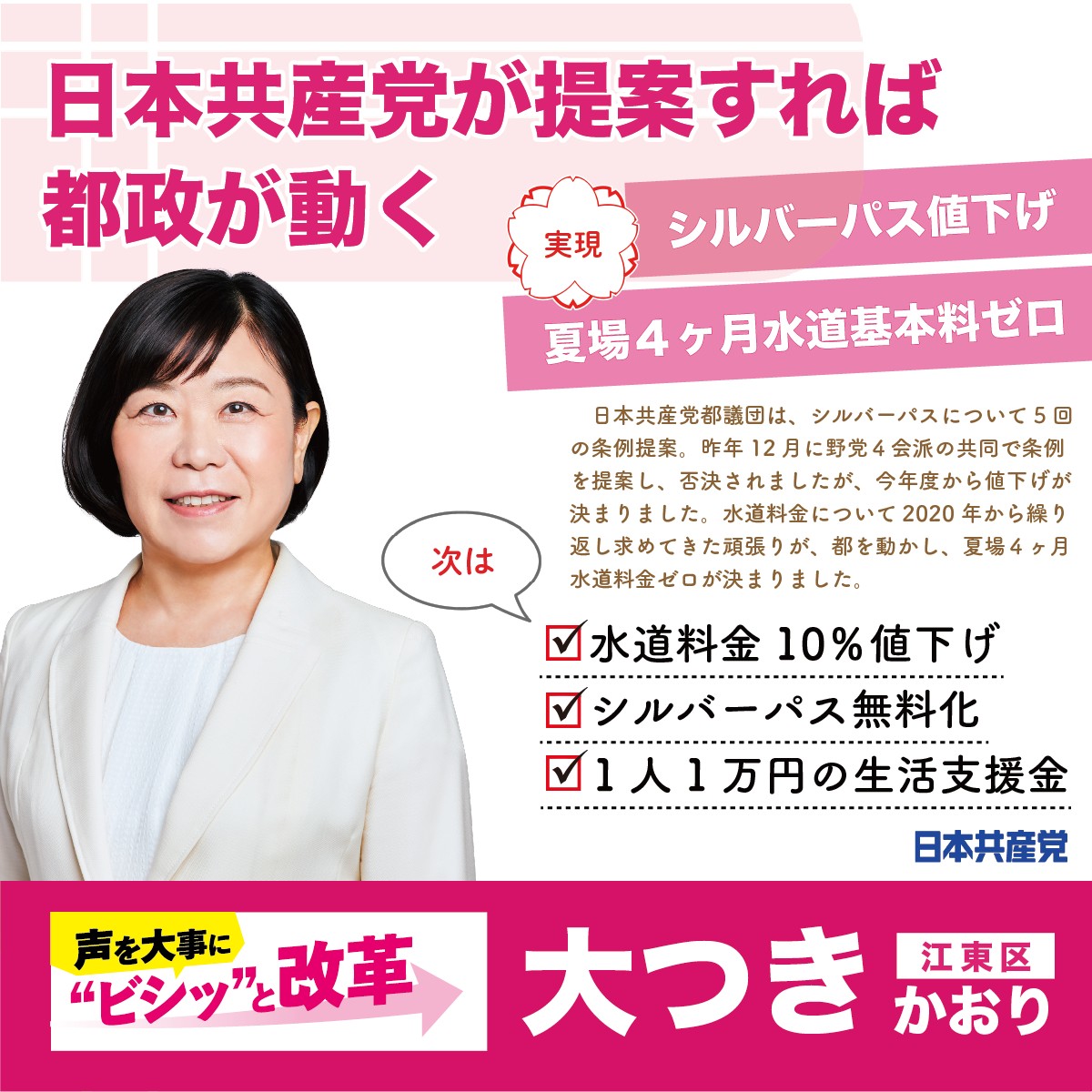 日本共産党は19議席、野党第一党の力で共同を広げ、提案を次々実現してきました。